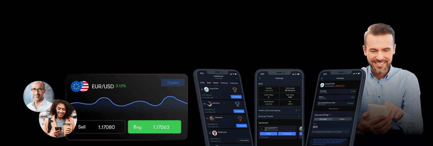 Copy traders who trade Real Stocks, Forex, CFDs