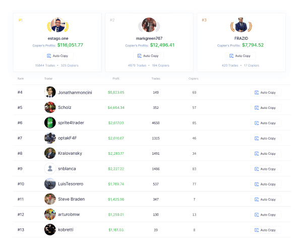 Follow Lead Traders and copy their trading activity with