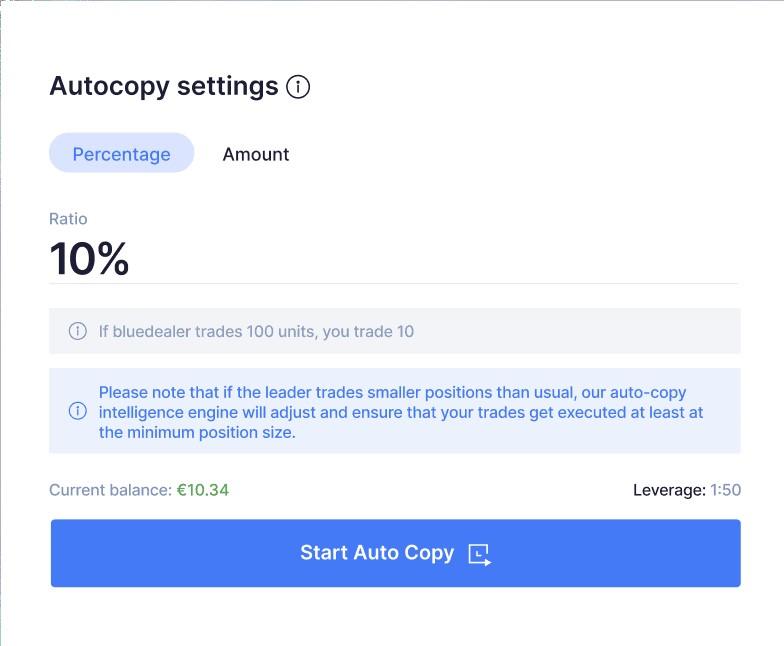 to Autocopy, deposit the amount of funds you’d like to allocate on the platform and Autocopy starts